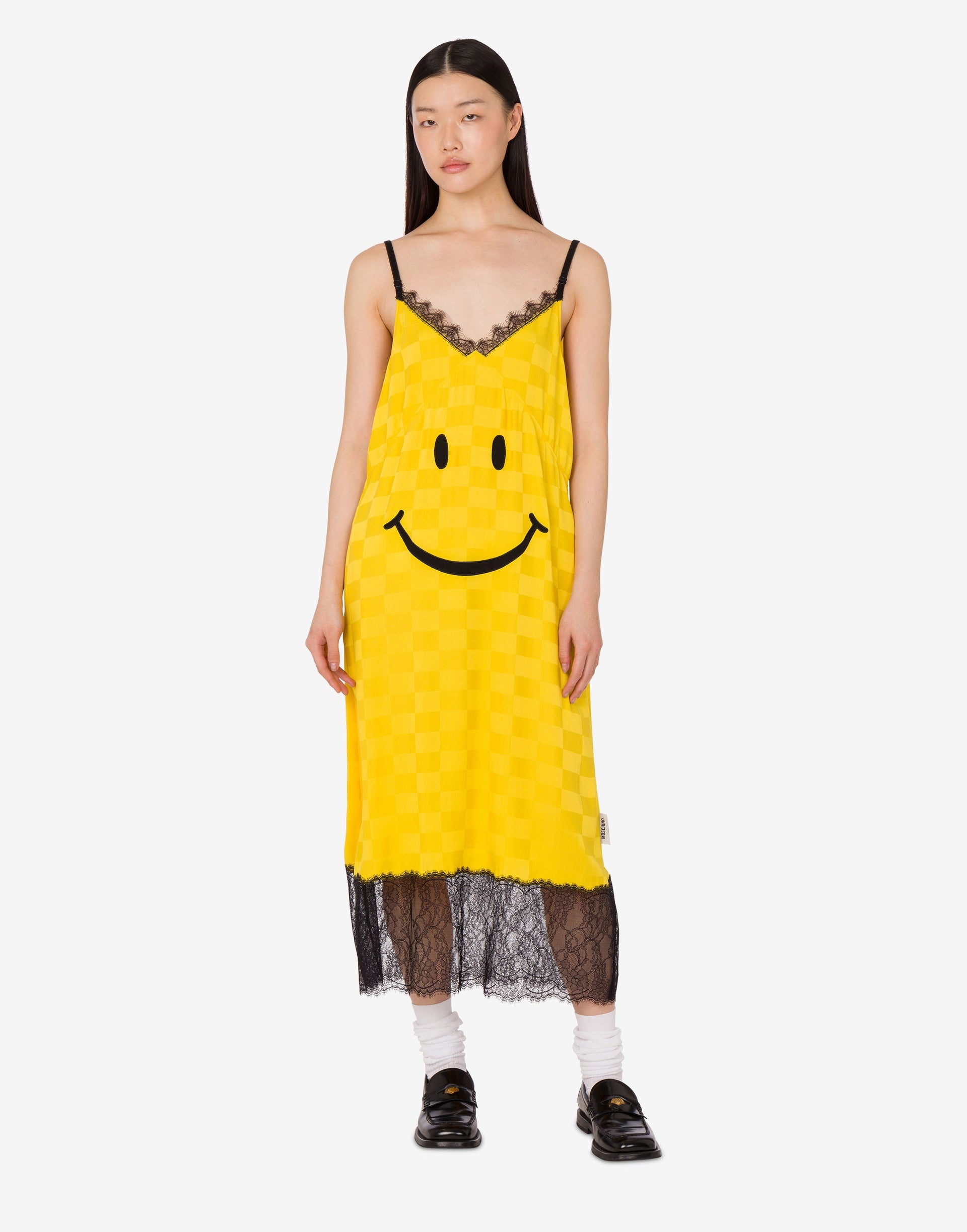THE FALL/WINTER 2025 PRE-COLLECTION FEATURES THE SILK-BLEND DRESS WITH A JACQUARD CHECK PATTERN, SMILEY® EMBROIDERY ON THE FRONT AND CONTRASTING LACE DETAILS. PRODUCT DETAILS LOOSE FIT - MADE IN COLLABORATION WITH SMILEY® - WIDE NECKLINE - SLEEVELESS - THIN ADJUSTABLE STRAPS - TWO SIDE POCKETS FABRIC: 77% CELLULOSE ACETATE, 23% SILK SKU: AEF252E A043555601027