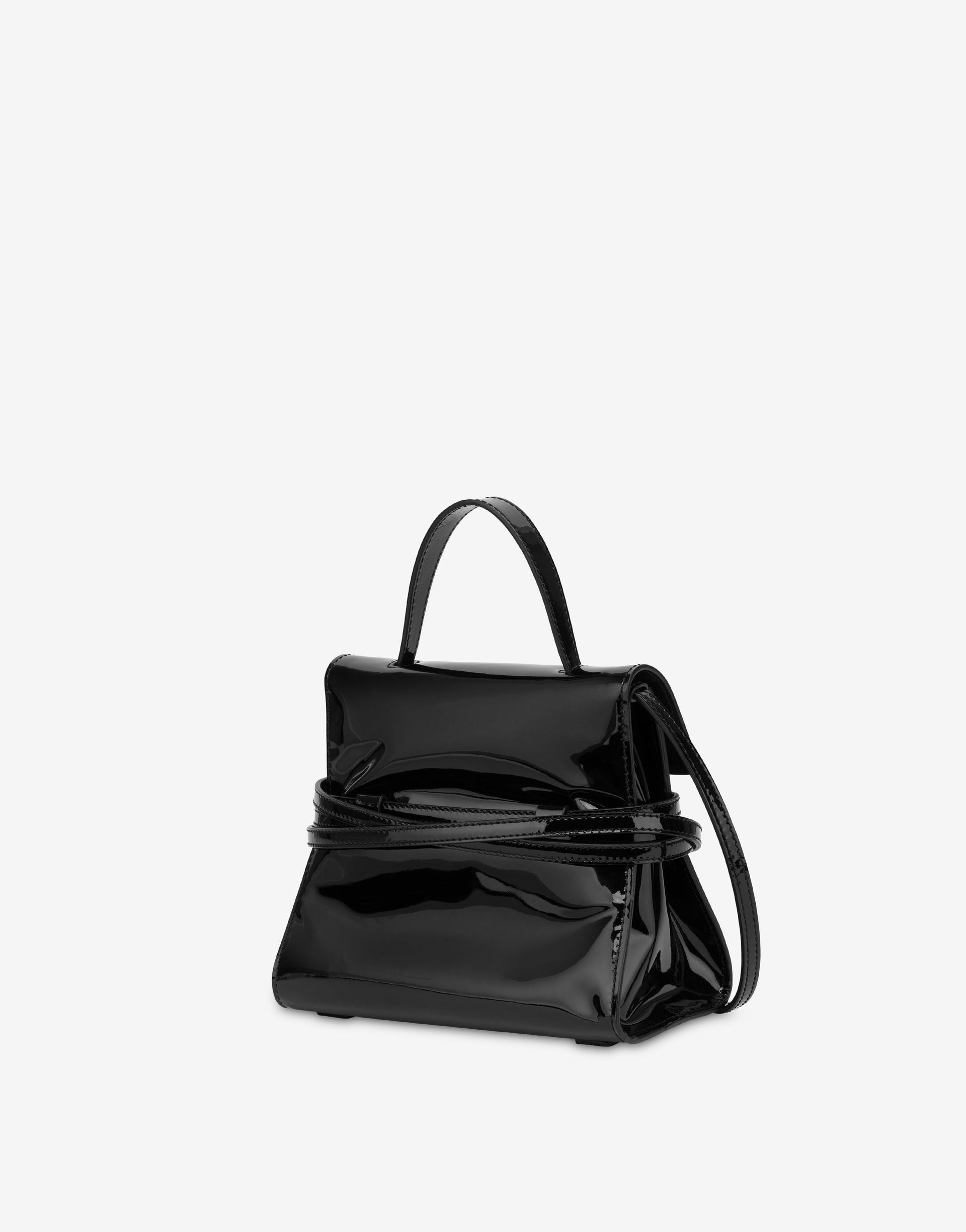 THE FALL/WINTER 2025 PRE-COLLECTION FEATURES THE SMALL PATENT LEATHER HANDBAG WITH A LIGHTWEIGHT CONSTRUCTION. DISTINCTIVE FEATURE IS THE DECORATIVE, FULLY REMOVABLE BELT THAT HUGS THE BODY OF THE BAG. PRODUCT DETAILS - SMALL SIZE - LOGO ON THE FLAP - ROUND HANDLE - ADJUSTABLE AND REMOVABLE SHOULDER STRAP - MULTIPLE PORTABILITY: HAND, SHOULDER, BANDOLIER - MAGNETIC CLOSURE - LINED INTERIOR WITH SMALL PATCH POCKET - LEATHERS USED ARE ALL PREMIUM QUALITY, NATURALLY TANNED AND HAND-FINISHED.ANY VEINS OR SMALL IMPERFECTIONS ARE THE VALUE OF THE LEATHER.FOR CLEANING THE LEATHER, WE SUGGEST USING ONLY NATURAL-BASED PRODUCTS. LINING: 100% COTTON - UPPER: 80% CALFSKIN, 20% SHEEPSKIN SKU: POLMC4003PP1NOE100A FITTING & DIMENSIONS - DEPTH: 11 CM - WIDTH: 20 CM - HEIGHT: 18 CM