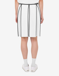 THE RESORT 2026 COLLECTION FEATURES THE TENNIS-INSPIRED PLEATED STRETCH KNIT SKIRT WITH SMALL GOLD ELECTROPLATED LETTER M ON THE FRONT. PRODUCT DETAILS REGULAR FIT - REGULAR WAIST - STRIPED INLAY AT THE WAIST FABRIC: 65% VISCOSE, 35% POLYAMIDE SKU: AEF261E A018005032001