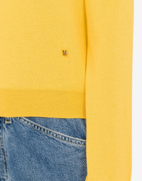 FINE WOOL AND SILK JUMPER WITH SMALL M IN GOLD-TONE GALVANISED METAL. PRODUCT DETAILS REGULAR FIT - METAL M LETTER - CREW NECK FABRIC: 70% PURE WOOL, 30% SILK SKU: AEF251E A090905010028 FITTING & DIMENSIONS - MODEL HEIGHT: 180 CM - MODEL BUST: 80 CM - MODEL WAIST: 60 CM - MODEL HIPS: 89 CM - MODEL SIZE: 40
