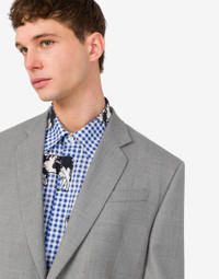 THE FALL/WINTER 2025 COLLECTION FEATURES THE SINGLE-BREASTED JACKET IN WOOL CANVAS. PRODUCT DETAILS REGULAR FIT - REVERS - PADDED SHOULDER PADS - WELT POCKET AND TWO FLAP POCKETS - BUTTONS ON THE BOTTOM SLEEVE - TWO INSIDE POCKETS - LINED FABRIC: 100% PURE WOOL - LINING: 60% CELLULOSE ACETATE, 40% CUPRO SKU: AEF252ZZV050352380505 FITTING & DIMENSIONS - MODEL HEIGHT: 188 CM - MODEL BUST: 92 CM - MODEL WAIST: 73 CM - MODEL HIPS: 92 CM - MODEL SIZE: 40