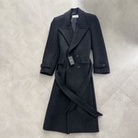 Saint Laurent Striped Wool Overcoat in Medium