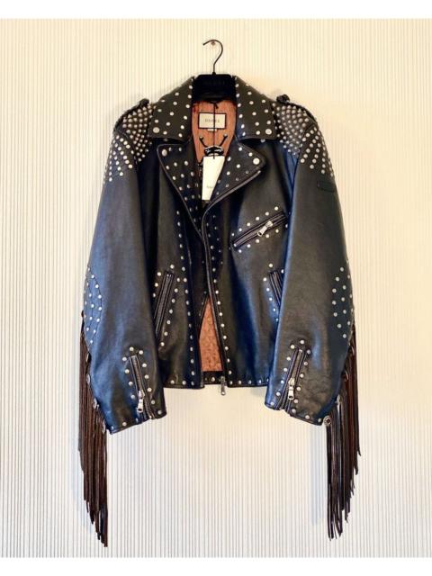 Gucci Studded Leather Biker Jacket with Fringe