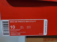Nike Air Presto Mid Utility in size 10, Black. Tried on once, never worn out and in excellent condition. Feel free to reach out if you have any questions.