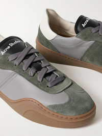 Bars Low Suede-Trimmed Leather Sneakers Gray