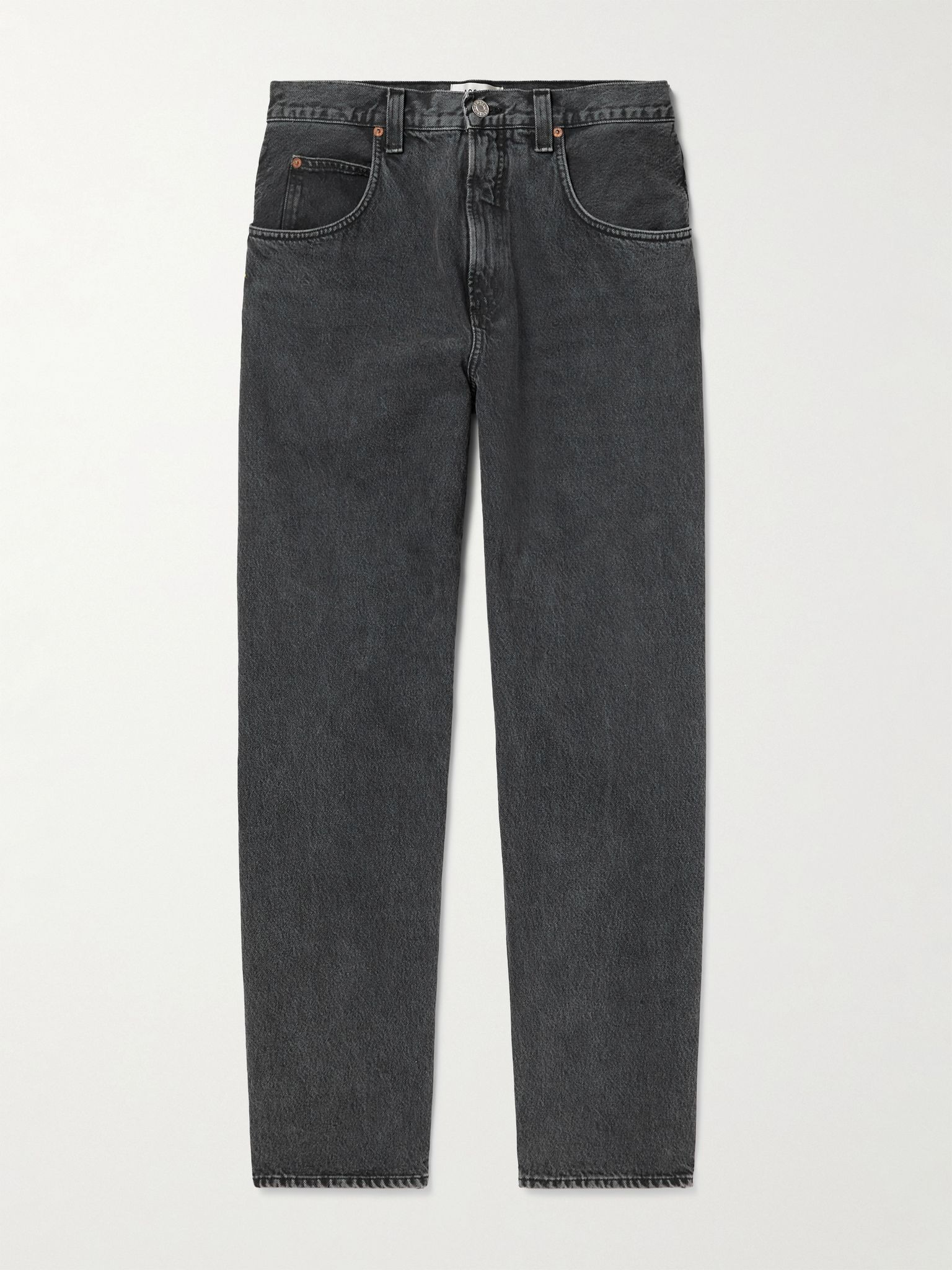 AGOLDE's 'Fusion' jeans feel vintage, but the straight cut is a classic. The denim has a marbled fade. Size & Fit - Fits large to size. Take one size smaller than normal - Relaxed-straight leg, low-crotch style - Mid-weight, non-stretchy fabric - Model is shown wearing a 30 - Model measures: waist size 32, height 6'2"/ 188cm Details & Care - Black denim - Button and zip fastening - 100% cotton - Designer wash: Division