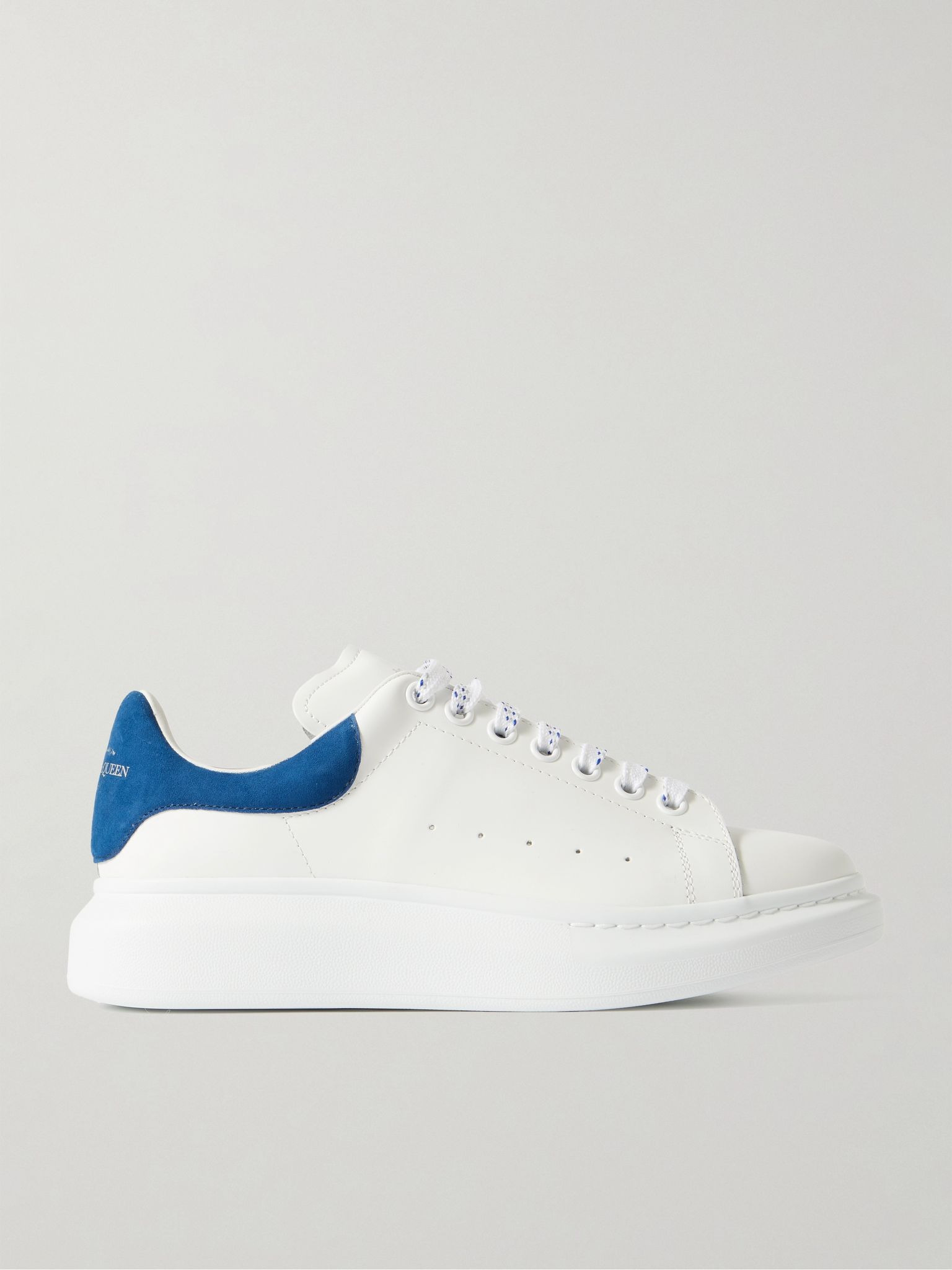 Alexander McQueen's exaggerated-sole sneakers need no introduction – they've been popular since 2016. This pair has been made in Italy from white leather, trimmed with blue suede heel tabs and set on chunky rubber soles. Size & Fit - Fits true to size. Take your normal size - European sizing Details & Care - White leather - Blue suede heel tabs, designer emblems, leather linings, exaggerated rubber soles - Lace-up - Designer colour: White/ Paris - Style number: 553680WHGP7