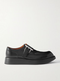 Alexander McQueen's brogues have a chunky profile that'll add subtle subversion to tailoring. Made from smooth leather, they rest on ridged soles and are fitted with logo-engraved T-bar buckles across the front. Size & Fit - European sizing Details & Care - Black leather - Buckle fastening