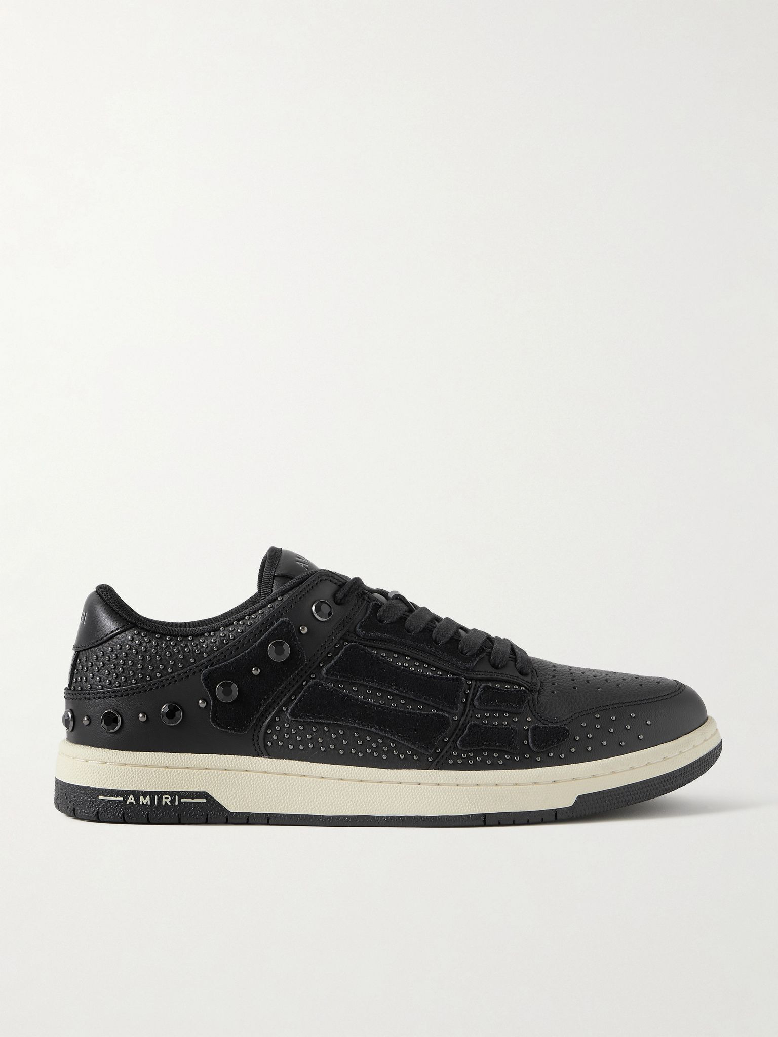 AMIRI has turned its best-selling 'Skel Toe' slip-ons into low-top sneakers. Designed with the same hand-cut appliques along the sidewalls, this embellished 'Skel-Top' pair is made from a mix of leather and suede and has comfortable padded collars. Size & Fit - Fits true to size. Take your normal size - Only available in full sizes, go up to the nearest whole size if you take a half size - European sizing Details & Care - Balck leather and suede (Calf) - Lace-up - Comes with dust bag - Style number: AMFOSR1170