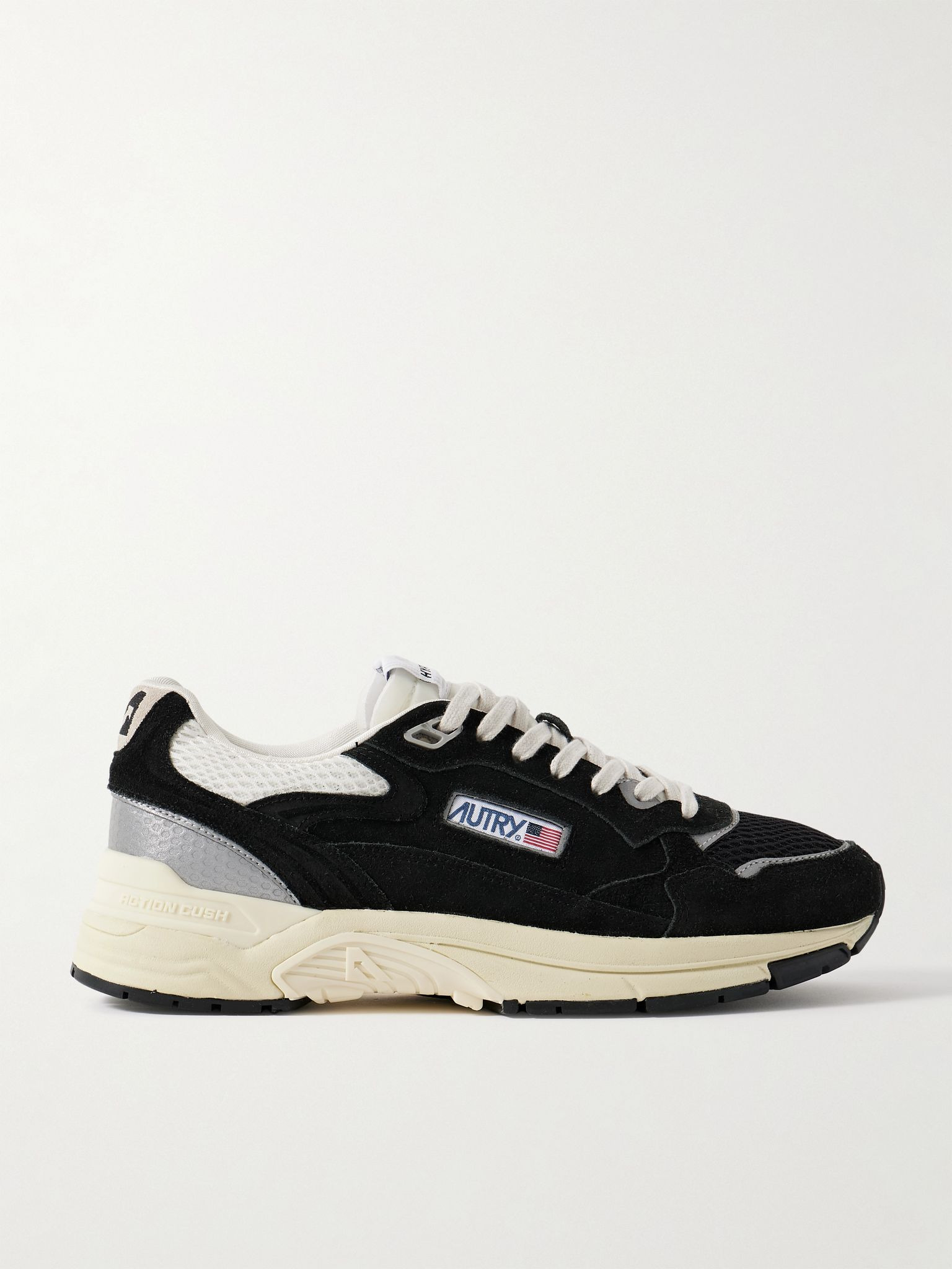 Autry says these 'Hyperway' sneakers are "inspired by the future". Trimmed with silver leather, they're made from suede and mesh and equipped with 'Action Cush' technology for all-day comfort. TPR stabilisers provide support and stability. Size & Fit - Fits true to size. Take your normal size - Only available in full sizes, go up to the nearest whole size if you take a half size - European sizing Details & Care - Black and beige suede, black and white mesh, silver leather - Lace-up - Style number: HYLM
