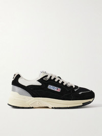 Hyperway Leather-Trimmed Suede and Mesh Sneakers Black