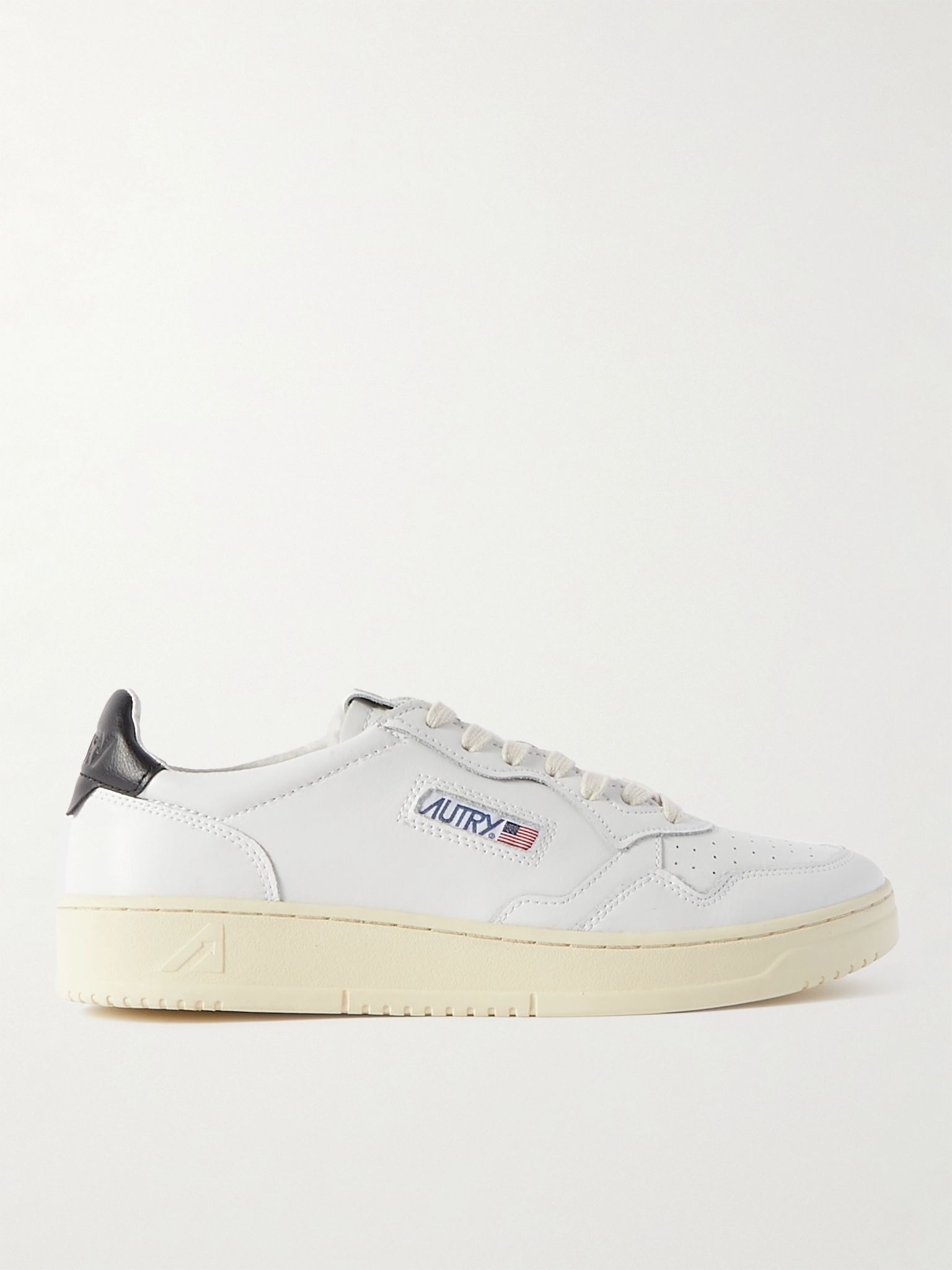 Inspired by vintage '80s styles, Autry's signature 'Medalist' sneakers are made from perforated leather for breathability and set on supportive rubber soles. Don't miss the branded heel tab and the American flags at the sides. Size & Fit - Fits true to size. Take your normal size - Only available in full sizes, go up to the nearest whole size if you take a half size - European sizing Details & Care - White and black leather (Cow) - Lace-up - Style number: AULMLL22