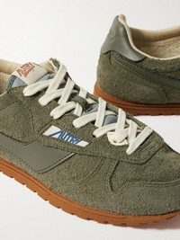 Autry says its 'Windspin' sneakers, inspired by the jet-setting 1960s, combine "the spirit of the American dream with Italian flair". Updated in brushed-suede, this version features signature logos, padded collars and ultra-flat rubber soles. Size & Fit - Fits true to size. Take your normal size - Only available in full sizes, go up to the nearest whole size if you take a half size - European sizing Details & Care - Army-green brushed-suede and leather - Lace-up - Designer colour: Moss - Style number: WSLMUA08UA08