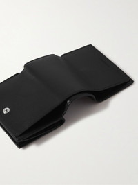 Logo-Print Full-Grain Leather Trifold Wallet Black