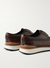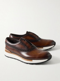 An inventive fusion of sports shoes and traditional brogues, Berluti's sneakers have been handcrafted in Italy from the brand's signature Venezia leather - the upper is constructed with a single curved seam to mimic running styles. They're set on lightweight foam midsoles for a bouncy stride, and gripped rubber bases for unbeatable traction. Size & Fit - Fits true to size. Take your normal size - UK sizing Details & Care - Tonal-brown Venezia leather - Lace-up - Comes with dust bag