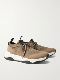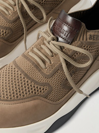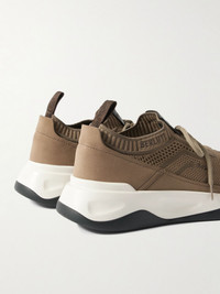 Shadow Nubuck-Trimmed Stretch-Knit Sneakers Brown