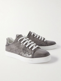 Berluti's low-top sneakers have been made in Italy from the house's famous Venezia leather, the same that's used for its formal shoes and briefcases. They're debossed with the label's signature 'Scritto' motif at the sides and meant to develop a unique patina over time. Size & Fit - Fits true to size. Take your normal size - European sizing Details & Care - Tonal-grey Venezia leather - Lace-up - Style number: S5330-004