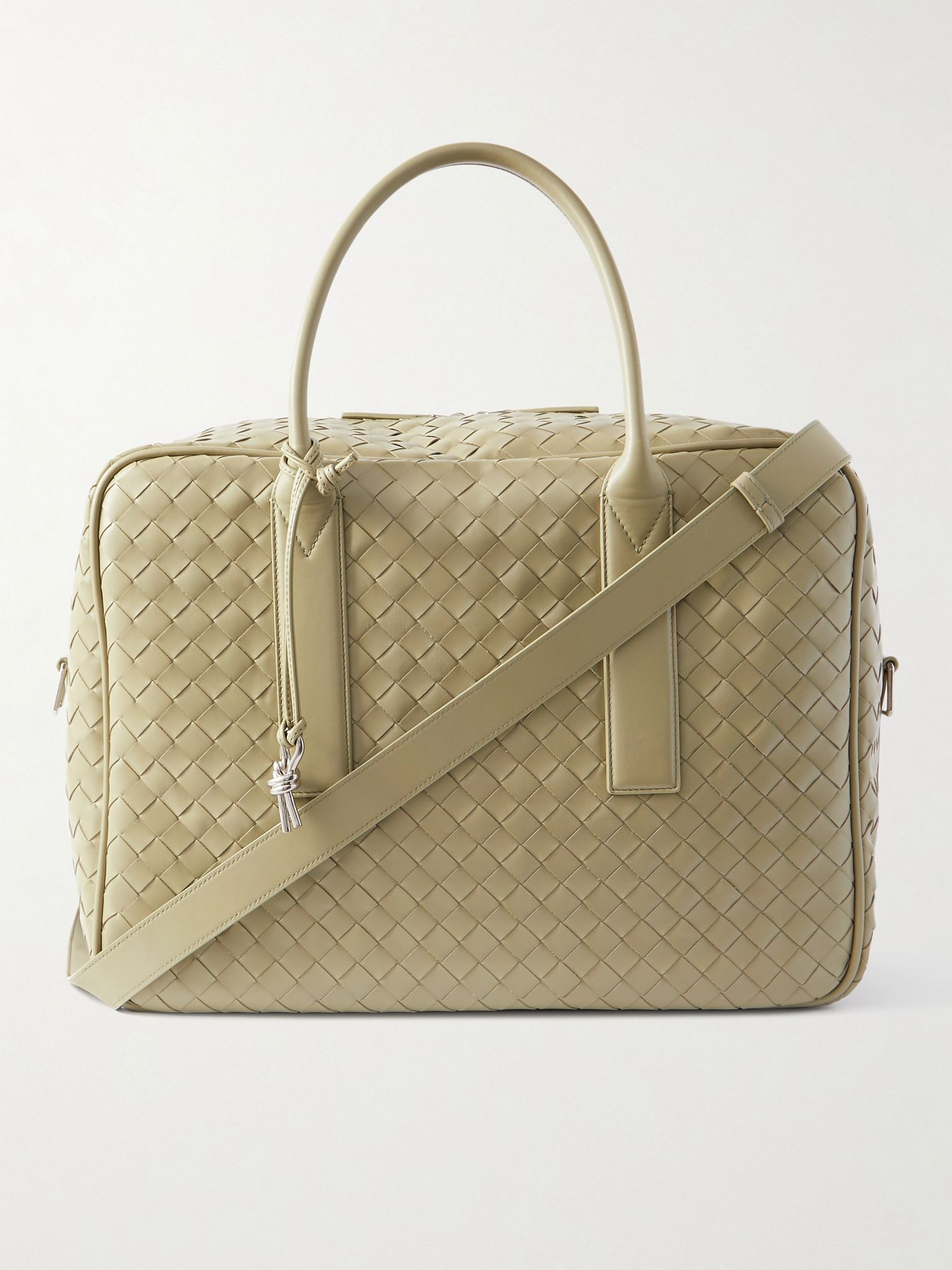 Bottega Veneta's signature intrecciato weaving technique represents the house's commitment to historic craftsmanship codes. This bag is crafted from grey-green leather and sized to house all of your workday essentials including a laptop and any documents. The adjustable shoulder strap keeps your hands free. Details & Care - Grey-green leather (Calf) - Two top handles - Adjustable shoulder strap - Internal slip and zipped pockets - Two-way zip fastening - Designer colour: Travertine