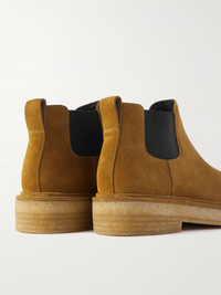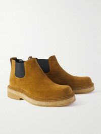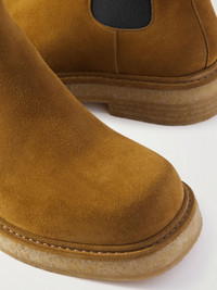 With Matthieu Blazy as Creative Director, Bottega Veneta has become increasingly stylish and functional – its collections are designed to be worn year after year. A chunky take on Chelsea styles, these 'Haddock' boots are made from suede and have elasticated inserts and thick crepe soles. Wear them with the label's wide-leg jeans and trousers. Size & Fit - Fits true to size. Take your normal size - Only available in full sizes, go up to the nearest whole size if you take a half size - European sizing Details & Care - Tan suede