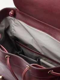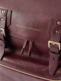 A distinguished take on a classic, function-first style, Brunello Cucinelli's backpack has been crafted in Italy from supple leather. It's thoughtfully organised with a mix of secure internal and external pockets and has a perforated back panel for enhanced breathability and comfort. Details & Care - Burgundy leather (Calf) - Top handle - Adjustable shoulder straps - Front zipped pocket, two side pockets, internal slip pockets - Buckle fastening