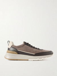 The same attention to quality and craftsmanship goes into Brunello Cucinelli's Italian-made sneakers as its famed tailoring and knits. These low-tops are panelled from suede and leather in a subdued neutral palette. Size & Fit - Fits true to size. Take your normal size - European sizing Details & Care - Black and cream leather, mushroom suede (Calf, Goat) - Lace-up - Style number: MZUSGGO278