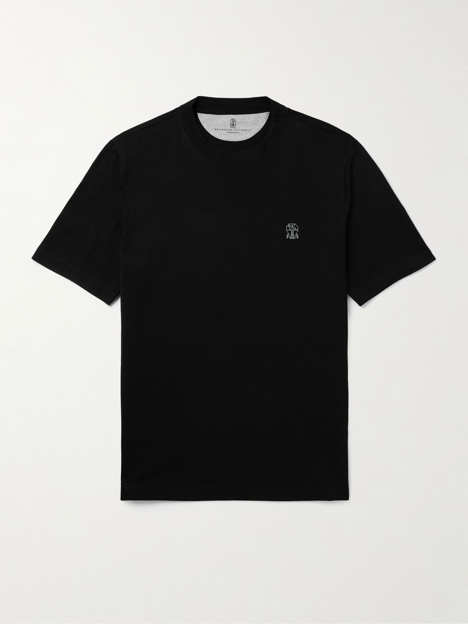 EXCLUSIVE AT MR PORTER. It's the commitment to quality fabrics and details that sets Brunello Cucinelli's staples apart – everything is made in specialist factories across Italy. This T-shirt is cut from soft cotton-jersey and printed with a crest that commemorates the label's hometown of Solomeo, Italy. Size & Fit - Fits true to size. Take your normal size - Designed for a regular fit - Mid-weight, slightly stretchy fabric - Model is shown wearing a M - Model measures: chest 38"/ 96cm Details & Care - Black and white cotton-jersey - 100% cotton - Machine wash