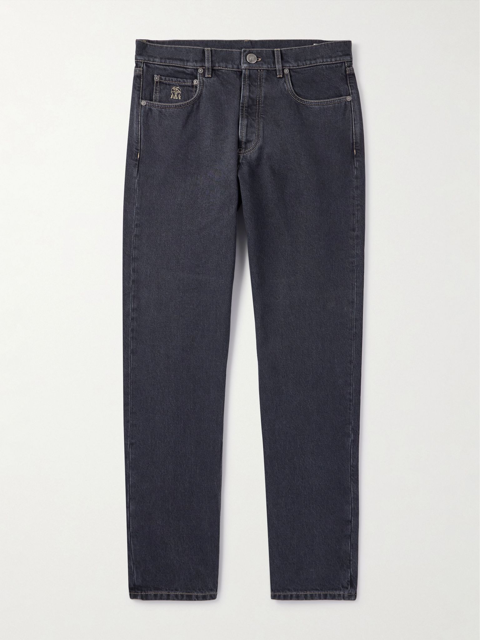 Brunello Cucinelli's Italian-made jeans are cut from denim in a charcoal wash that'll fade and whisker naturally over time. They have a straight-leg fit outlined with contrasting stitching and feature the label's logo embroidered at the pocket. Size & Fit - Those who are above 6'1"/ 185cm may wish to take the next size up - Regular-straight leg, mid-rise style - Mid-weight, non-stretchy denim - Model is shown wearing an IT 48 - Model measures: waist size 30, height 6'2"/ 188cm Details & Care - Charcoal denim - Button fastenings - 100% cotton - Machine wash