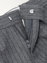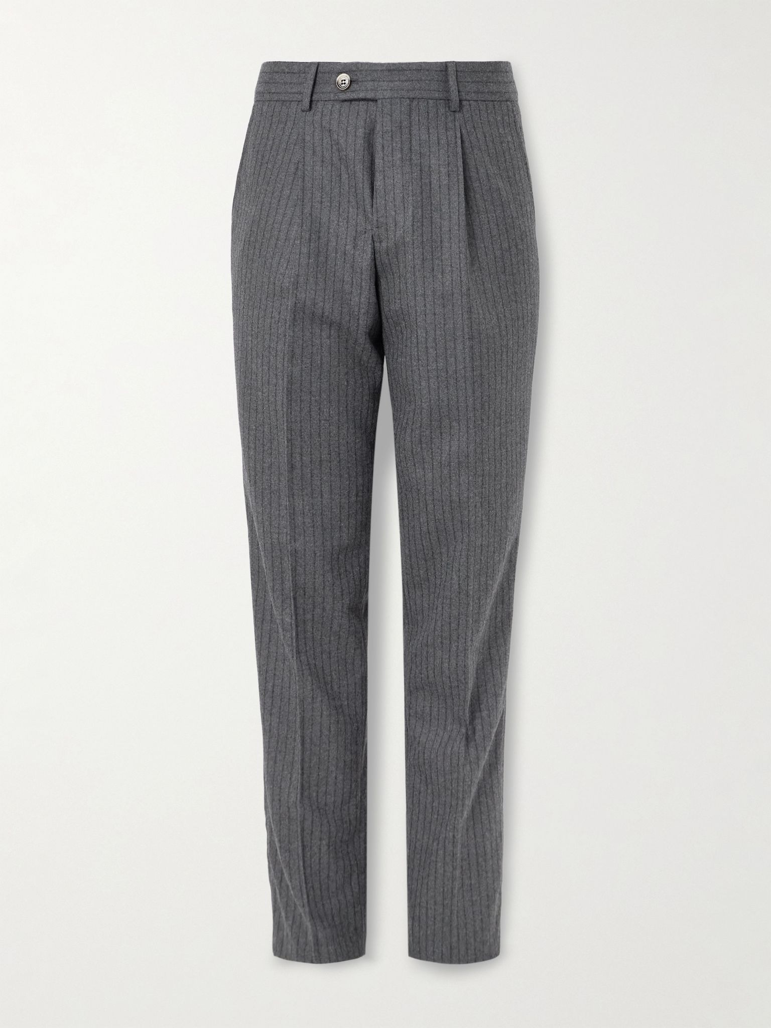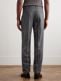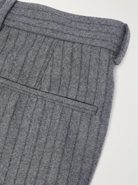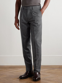 Straight-Leg Pleated Striped Wool-Flannel Suit Trousers Gray
