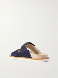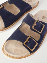 Brunello Cucinelli gets his workers to wear-test each design, so everything is made to the highest standards. These sandals have soft suede buckled straps and moulded footbeds. They're set on rubber soles and have contrasting midsoles for a stacked effect. Size & Fit - Fits true to size. Take your normal size - Only available in full sizes, go up to the nearest whole size if you take a half size - European sizing Details & Care - Navy suede (Calf) - Buckle fastenings