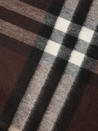 Owning some Burberry check is like owning a piece of British fashion history. This scarf is made from pure cashmere patterned with the iconic pattern and finished with fringed ends. Wear it year after year with any coat or jacket. Details & Care - Tonal-brown, black and white cashmere - 100% cashmere - Dry clean