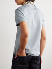 Slim-Fit Checked Cotton-Piqué Polo Shirt Gray