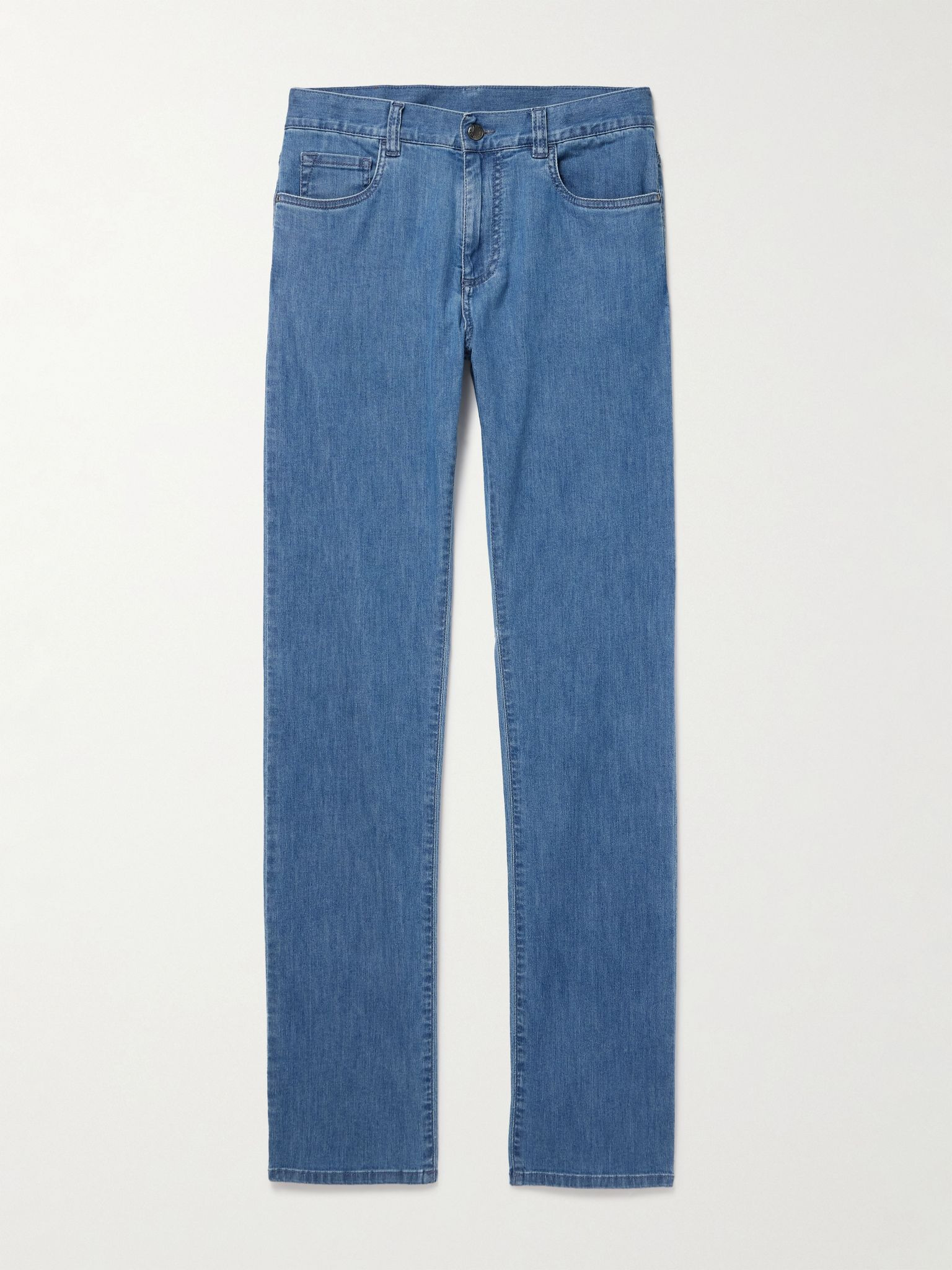 Family-run Italian label Canali has been creating polished yet effortless clothing for nearly a century. These jeans are cut from soft denim with a hint of stretch and have a classic straight-leg profile. Size & Fit - Fits true to size. Take your normal size - Slim-straight leg, mid-rise style - Mid-weight, slightly stretchy fabric - Model is shown wearing an IT 48 - Model measures: waist size 32, height 6'2"/ 188cm Details & Care - Blue stretch-denim - Button and zip fastening - 99% cotton, 1% elastane - Machine wash