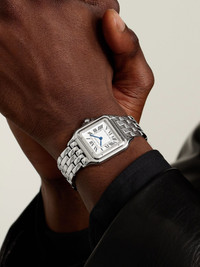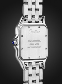 Cartier's 'Panthere de Cartier' watch has been one of the house's most iconic jewels since the '80s. Cast from polished stainless steel, this large version has a recognisable square face with sleek black Roman numerals and signature blued steel hands that match the spinel crown. For warranty information, please refer to details & care Details & Care Movement - Quartz movement Functions - Hour and minute hands Dial - White dial - Black Roman numerals and markers, blued steel sword-shaped hands Case - Stainless steel case - Crown with blue cabochon for time adjustments - Sapphire glass crystal - Engraved case back - Invisible clasp-fastening stainless steel bracelet Specifications - Case width: 31mm; case height: 42mm; case thickness: 6.71mm - Water resistance: 3 bar - Comes in a presentation box - Reference number: WSPN0016 We offer a two-year warranty for all working parts and manufacturing faults for luxury watches. For more information, contact one of our experts by emailing watches@mrporter.com