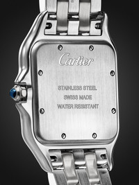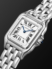Cartier calls its 'Panthere de Cartier' the "quintessential jewellery watch" — it was launched in 1983 and named for the ultra-flexible bracelet inspired by the movements of the house's iconic animal. This version has been made in Switzerland from polished stainless steel and features classic design signatures, including blued steel sword-shaped hands and black Roman numerals. For warranty information, please refer to details & care Details & Care Movement - Swiss-made quartz movement Functions - Hour and minute hands Dial - Silvered dial - Blued steel sword-shaped hands, black Roman numerals and markers Case - Stainless steel case - Crown with blue cabochon for time adjustments and manual winding - Engraved case back - Clasp-fastening bracelet Specifications - Case length: 42mm; case width: 31mm; case thickness: 6.71mm - Water resistance: 3 bar - Comes in a presentation box - Reference number: CRWSPN0016 We offer a two-year warranty for all working parts and manufacturing faults for luxury watches. For more information, contact one of our experts by emailing watches@mrporter.com