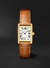 The Cartier name alone is well-esteemed, but the French house's high regard is validated by the impressive workmanship that goes into its fine watches. Manufactured in Switzerland, this 'Tank' edition is modelled after the one worn by Louis Cartier himself and features rounded lugs inspired by his appreciation for Art Deco style. The 18-karat gold case houses a precise quartz movement and complements the brown alligator strap. For warranty information, please refer to details & care Details & Care Movement - Quartz movement Functions - Hour and minute hands Dial - Silver-grained dial - Blue steel hands, black Roman numerals and markers Case - 18-karat gold case - Mineral crystal lens - Beaded crown with blue cabochon for date and time adjustments and manual winding - Clasp-fastening brown alligator strap Specifications - Case diameter: 29.5mm x 22mm; case thickness: 6.35mm - Water resistance: 3 bar - Comes in a presentation box - Alligator: USA - Reference number: CRW1529856 We offer a two-year warranty for all working parts and manufacturing faults for luxury watches. For more information, contact one of our experts by emailing watches@mrporter.com