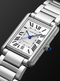 "A legend was born” when Louis Cartier created the first 'Tank' prototype in 1917 – each variation of the iconic watch developed since preserves the design integrity of that original model. With the same clean lines, this 'Must' reference has been made in Switzerland from stainless steel and is set on a supple leather strap. The hallmark details are the blued-steel sword-shaped hands, Roman numerals and beaded crown set with a cabochon spinel. For warranty information, please refer to details & care Details & Care Movement - Swiss-made calibre 1847 MC automatic movement with 40-hour power reserve Functions - Hour and minute hands - Date window Dial - Silvered flinque dial - Blued steel sword-shaped hands, black Roman numerals and indices Case - Stainless steel case - Crown with blue cabochon for time adjustments and manual winding - Sapphire glass crystal - Engraved case back - Invisible clasp-fastening stainless steel bracelet Specifications - Case width: 31mm; case thickness: 8.4mm - Water resistance: 3 bar - Comes in a presentation box - Reference number: WSTA0053 We offer a two-year warranty for all working parts and manufacturing faults for luxury watches. For more information, contact one of our experts by emailing watches@mrporter.com