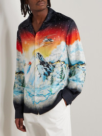 Casablanca never shies away from a bold print — this shirt features a 360-degree view of an alpine landscape with a skier performing a safety grab while airborne at the back. It's cut for a relaxed fit from silk-twill and has a convertible collar. Size & Fit - Fits true to size. Take your normal size - Designed for a relaxed fit - Lightweight, non-stretchy fabric - Model is shown wearing an IT 48 - Model measures: chest 38"/ 96cm, height 6'0"/ 183cm Details & Care - Multicoloured silk-twill - Button fastenings - 100% silk - Dry clean