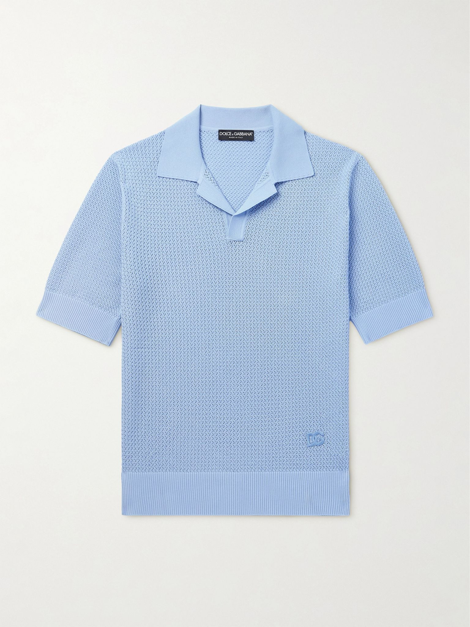 Dolce&Gabbana's SS25 show began with a run of open-knit shirts, complete with breezy collars and slouchy sleeves. Part of the collection, this polo shirt has been made in Italy from soft cotton and embroidered with a tonal logo at the front. Size & Fit - Fits true to size. Take your normal size - Designed for a slim fit - Lightweight, open knit - Model is shown wearing an IT 48 - Model measures: chest 38"/ 96cm, height 6'0"/ 183cm Details & Care - Light-blue cotton - 100% cotton - Hand wash