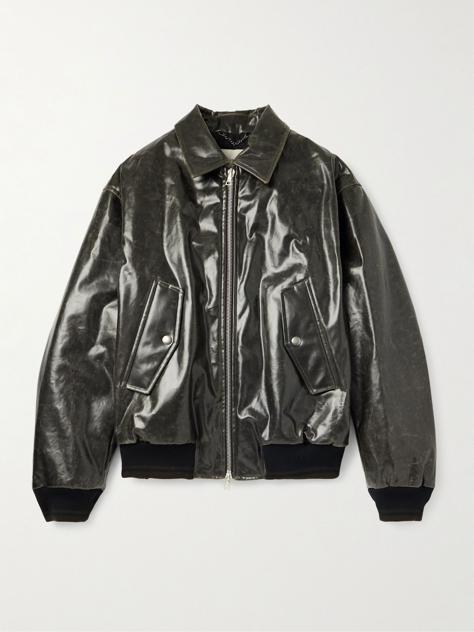 The distressed finish on Dries Van Noten's jacket gives it a time-worn feel. Made from a shiny coated cotton-blend, it has a relaxed shape with dropped shoulders, striped ribbed trims and roomy flap pockets. Use the two-way zip fastening to adjust the coverage. Size & Fit - Model wears a size larger to achieve a looser fit - Mid-weight, slightly stretchy fabric - Model is shown wearing a M - Model measures: chest 36"/ 92cm, height 6'1"/ 185cm Details & Care - Black coated cotton-blend - Two-way zip fastening - 78% cotton, 20% polyurethane, 2% elastane; lining: 35% cotton, 33% viscose, 31% polyester, 1% polyamide - Fully lined - Dry clean