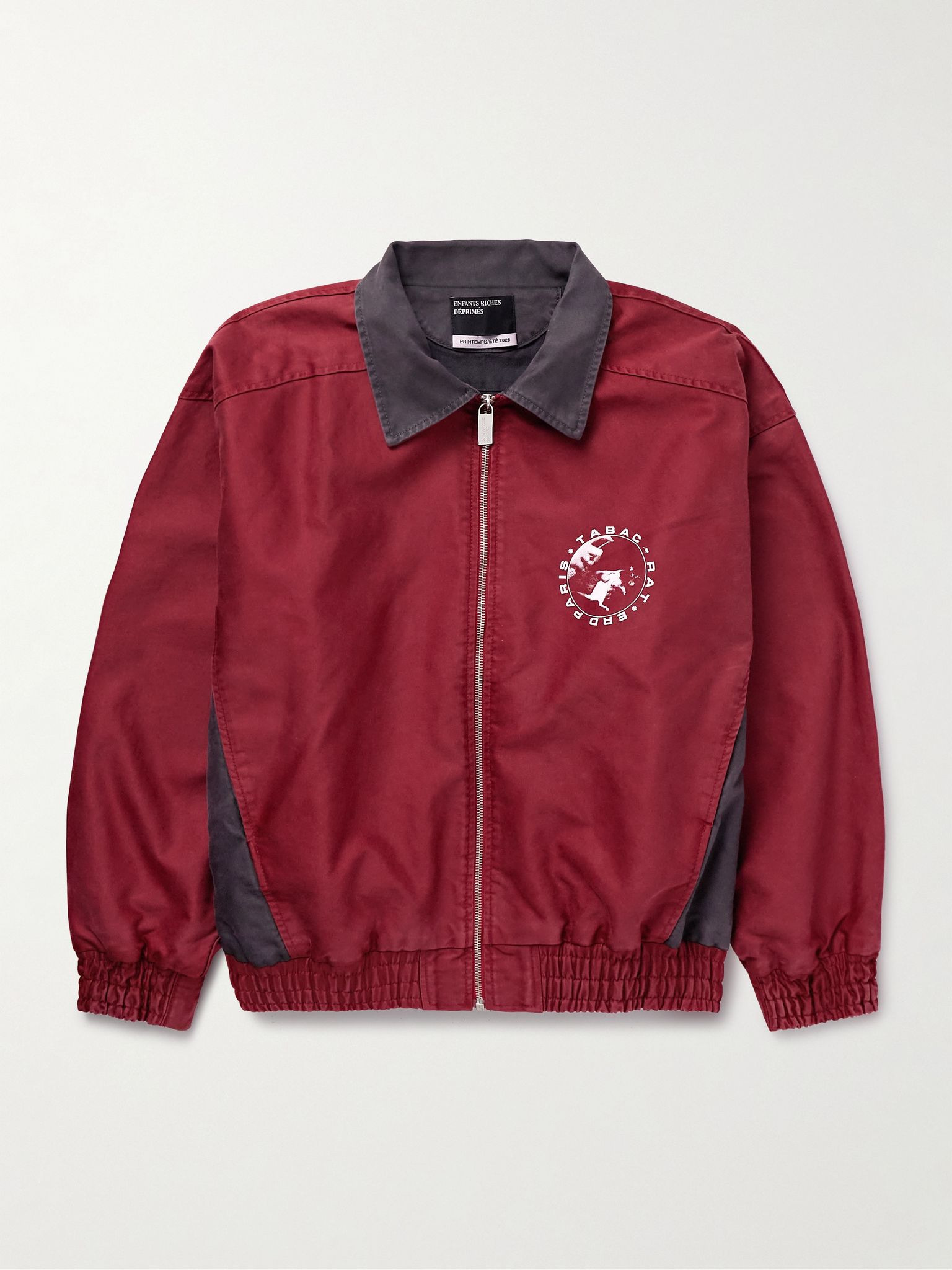 Tabac Rat Logo-Print Colour-Block Cotton-Moleskin Track Jacket Red