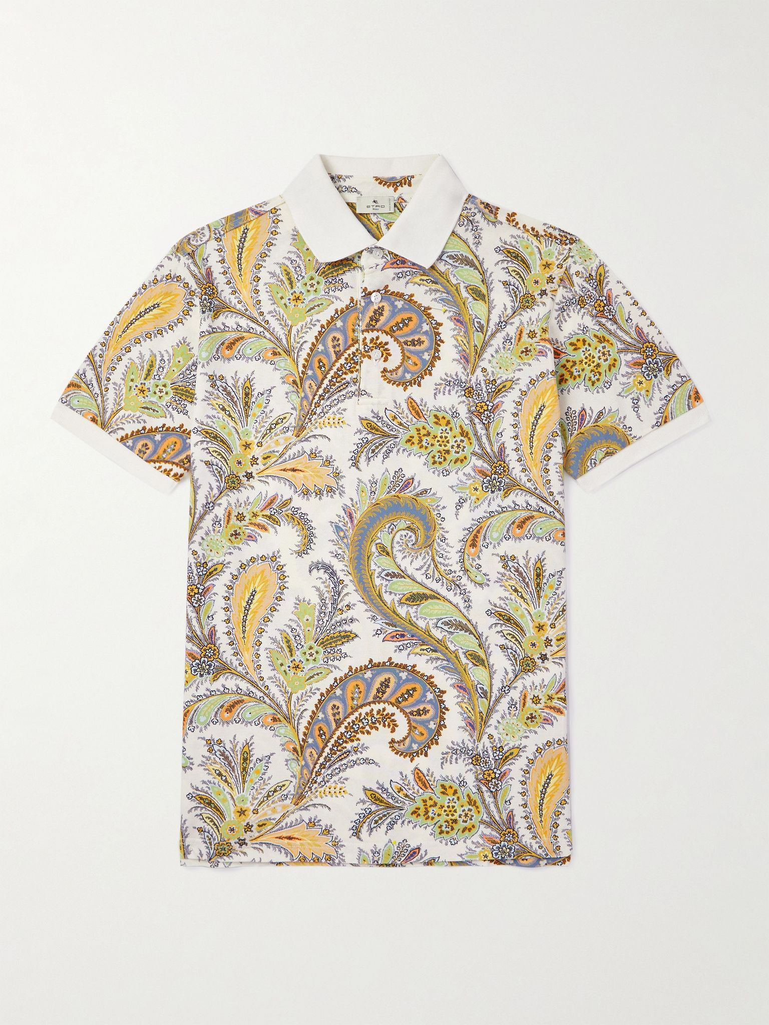 Etro's 'Roma' polo shirt honours the brand's '60s heritage with its colorful paisley pattern. Cut for a slim fit, it's made from cotton-pique and has contrasting white trims. Size & Fit - Fits true to size. Take your normal size - Designed for a slim fit - Lightweight, slightly stretchy fabric - Model is shown wearing a M - Model measures: chest 38"/ 96cm, height 6'2"/ 188cm Details & Care - Multicoloured cotton-pique - Button fastenings - 100% cotton