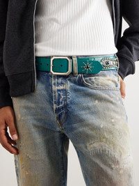 Viewing resurgent '00s trends through Gallery Dept.'s rebellious lens, this belt is crafted from a mix of smooth and croc-effect leathers meticulously hand-studded with its namesake and decorative details. Wear shirts half-tucked to show off the artful adornments. Size & Fit - Fits true to size. Take your normal size - Model is shown wearing a 30 - Model measures: waist size 30 Details & Care - Turquoise leather (Calf), green croc-effect leather - Buckle fastening