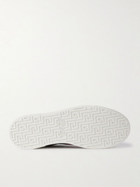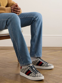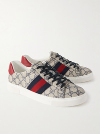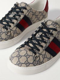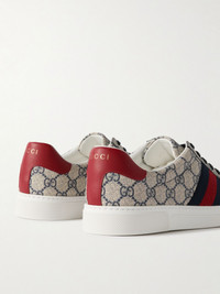 Ace Leather and Webbing-Trimmed Monogrammed Canvas Sneakers Beige