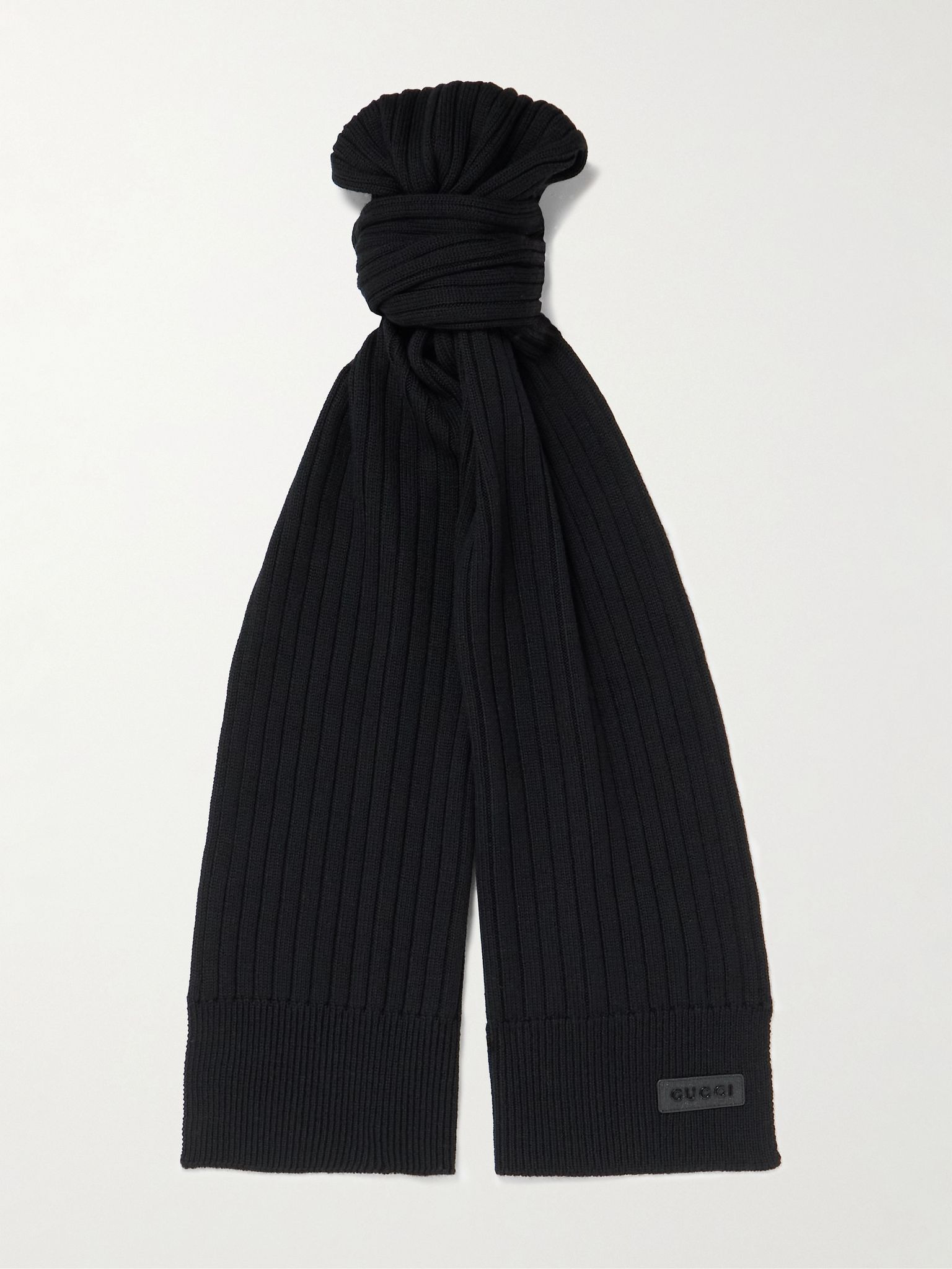Logo-Appliquéd Ribbed Wool Scarf Black