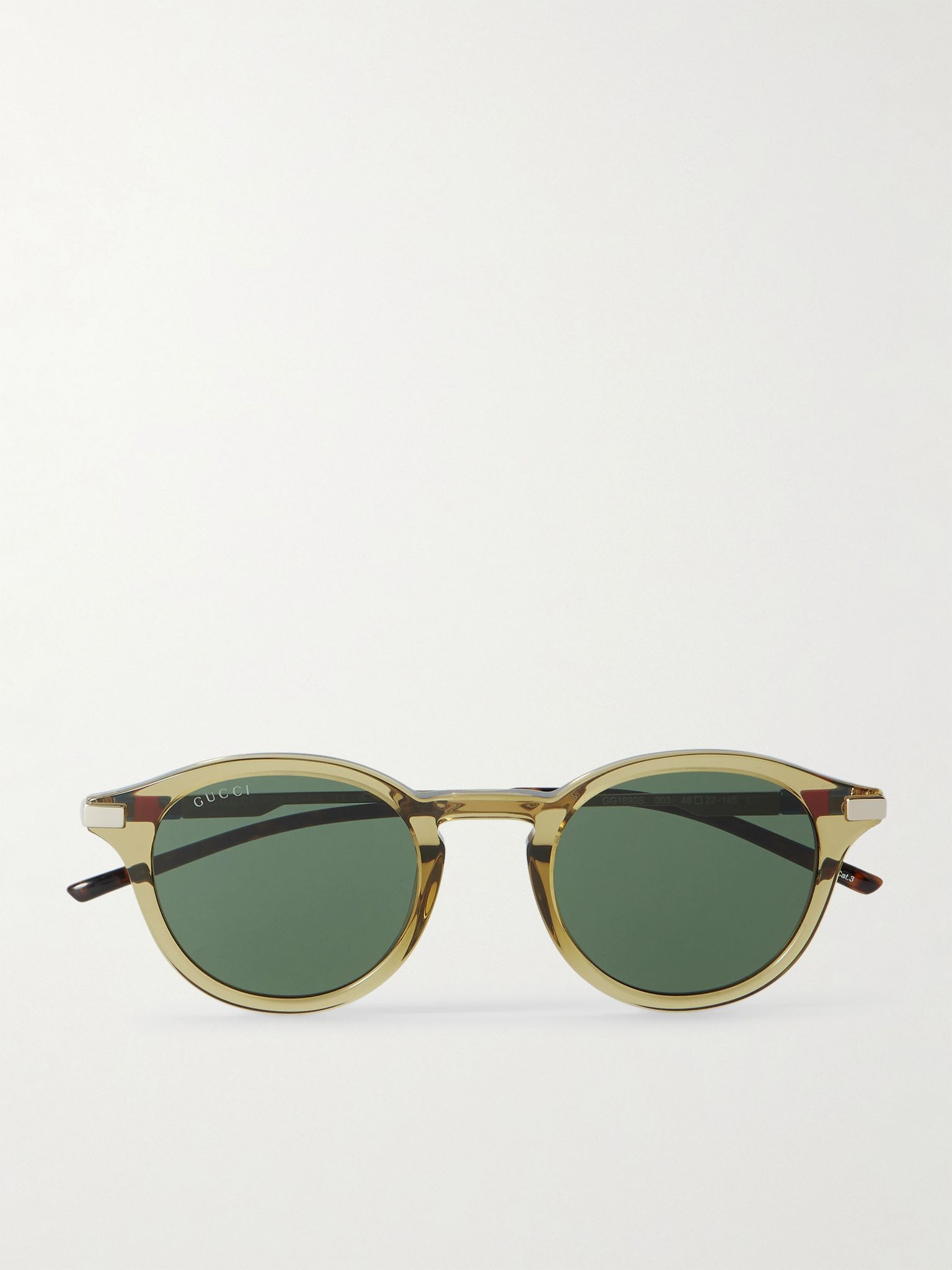 Gucci Eyewear's sunglasses have been a cult favourite since the late '80s. This round-frame pair is made from acetate and has gold-tone arms enamelled with signature stripes. Details & Care - Light-brown acetate, gold-tone enamel - Come with a case - 100% UV protection