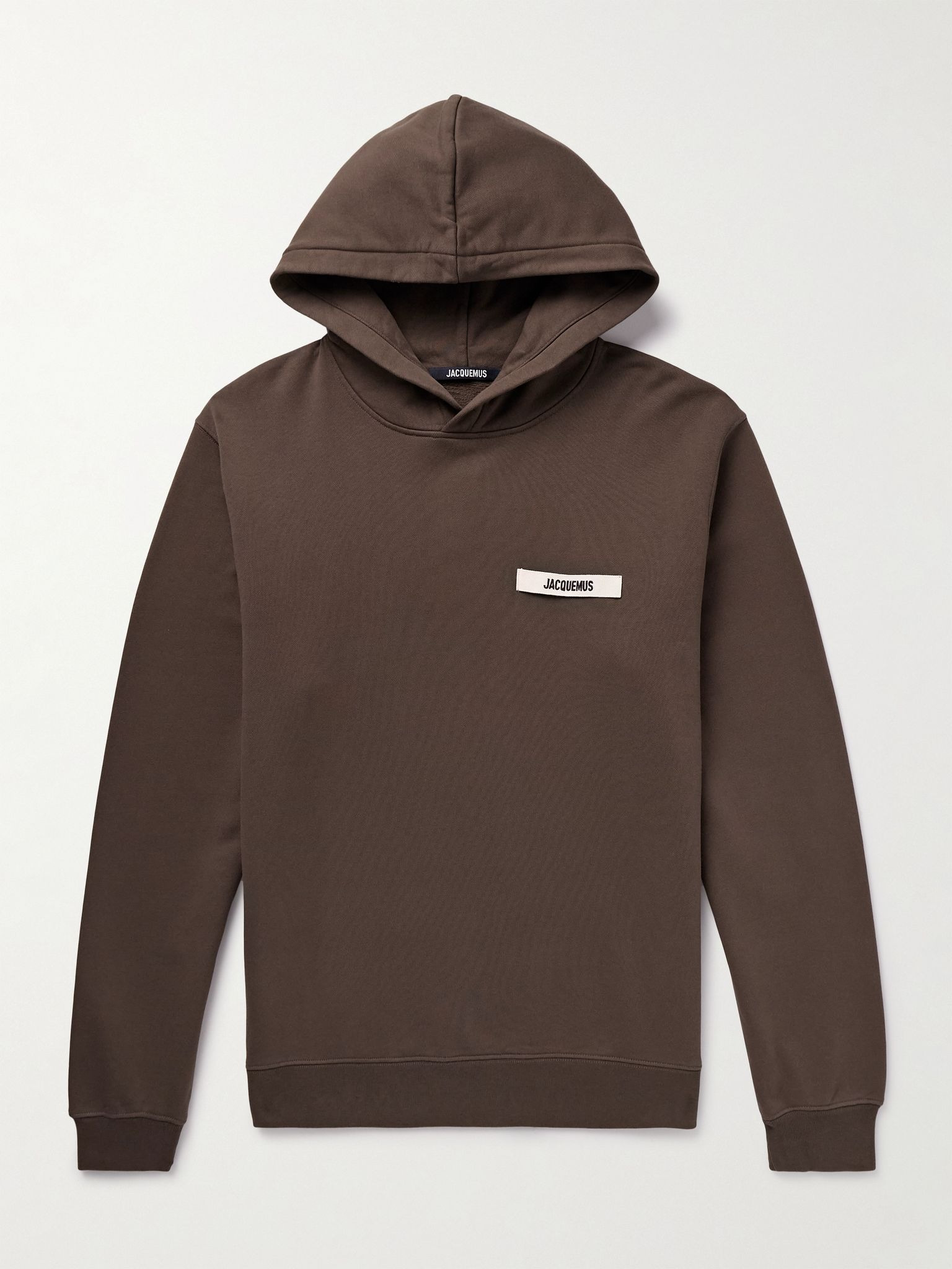 This hoodie features a grosgrain label on the chest embroidered with the Jacquemus logo. It's made from cotton-jersey with a soft fleece backing and has a relaxed shape defined by ribbed trims. Size & Fit - Model wears a size larger to achieve a looser fit - Mid-weight, slightly stretchy fabric - Model is shown wearing a M - Model measures: chest 36"/ 92cm, height 6'0"/ 183cm Details & Care - Chocolate fleece-back cotton-jersey - 100% cotton - Machine wash
