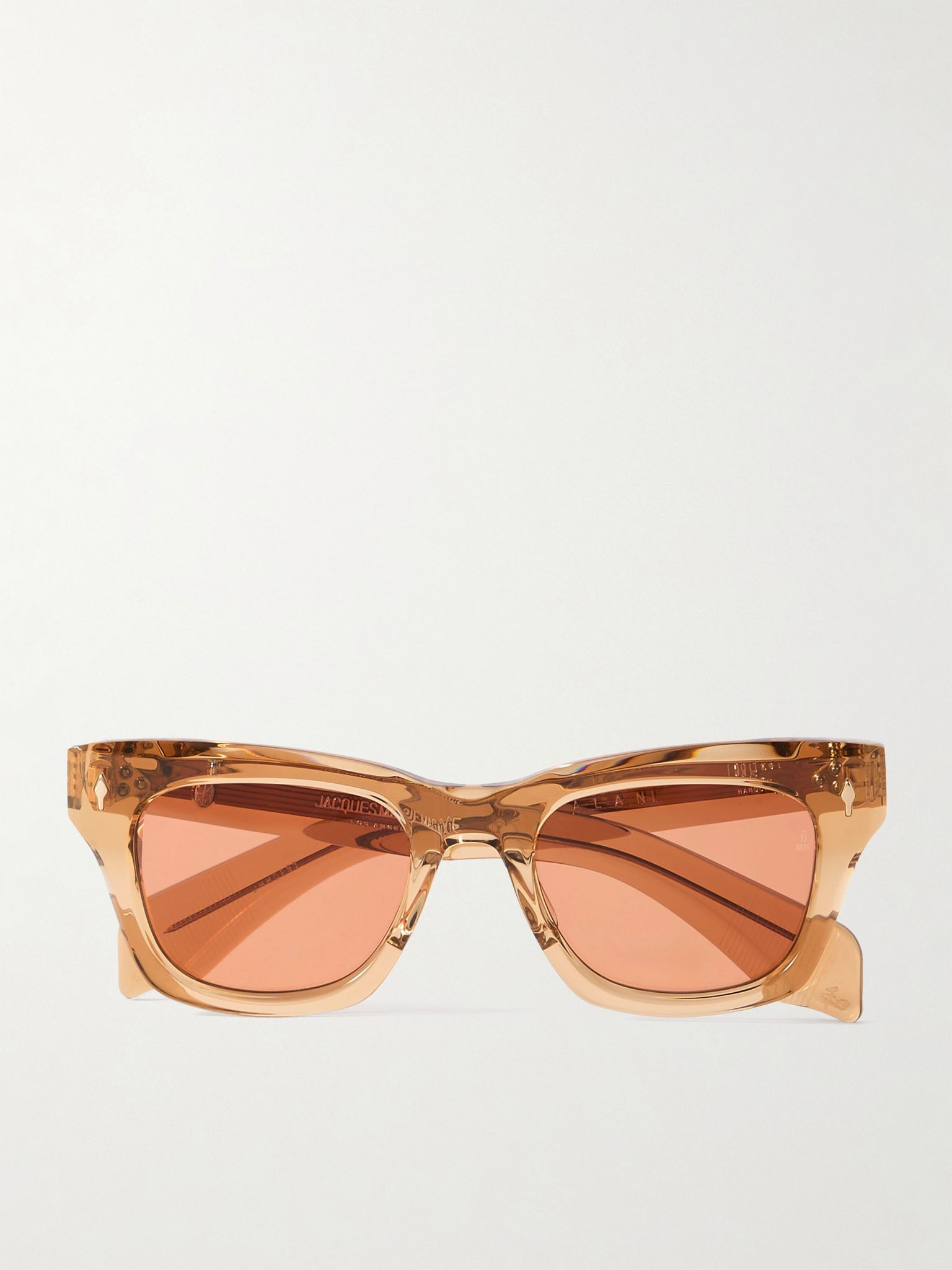 Inspired by the cat-eye sunglasses worn by Bob Dylan in the '60s, these 'Dealan' sunglasses evoke, says Jacques Marie Mage, "the musician's devil-may-care charisma." They've been made in Japan from tan acetate and have peachy lenses in their square frames and precious metal details. Responsible Craftsmanship. This product promotes artisanal skill and brands that invest in communities and adhere to fair-trade principles. Find out more about our Consciously Crafted criteria here. Details & Care - Tan transparent acetate - Come with a case - 100% UV protection