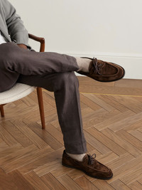 John Lobb's suede boat shoes fit comfortably thanks to light 'sock' padding and flexible soles. They've been made in the UK using the traditional Blake method and are threaded with a single lace around the cuff. Size & Fit - Fits true to size. Take your normal size - UK sizing Details & Care - Dark-brown suede (Calf) - Lace-up
