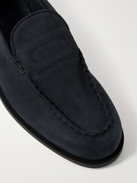 John Lobb handcrafts each pair of shoes according to an extensive 190-step process that it's used since the brand was founded in 1866. Made from supple suede in the label's Northampton workshop, these 'Pace' loafers have wavy-stitched, raised lake-seam apron toes and the outline of penny bars along the vamps. The flexible rubber soles are especially comfortable. Size & Fit - Fits true to size. Take your normal size - UK sizing Details & Care - Navy suede (Calf)