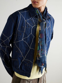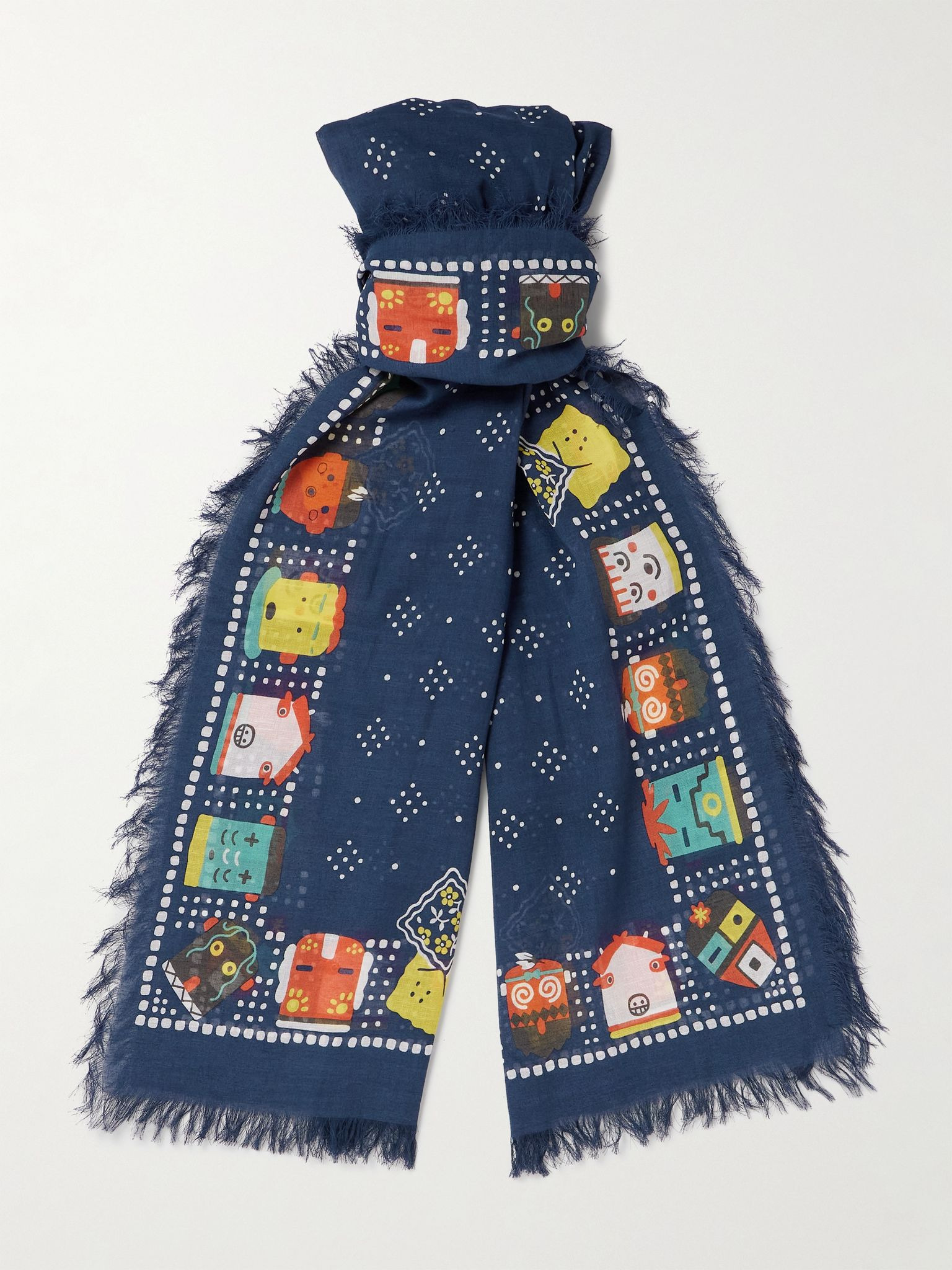 Frayed Printed Cotton-Blend Gauze Scarf Navy